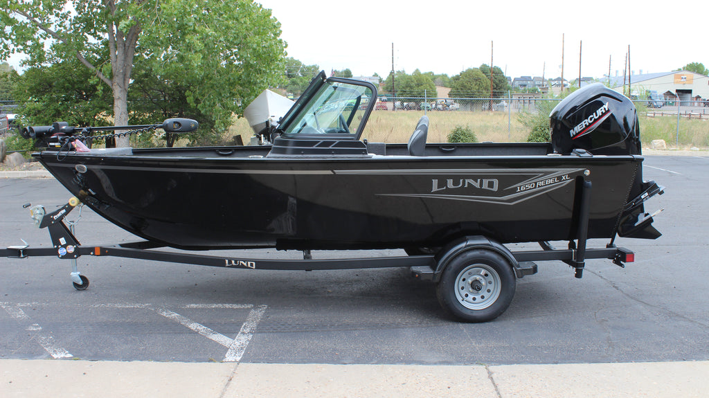 2024 Lund 1650 Rebel XL powered by a Mercury 90 hp outboard. Two left in stock to choose from, one Blue and one Black. Options on our in stock units include : Fishing Ready package includes 3 bank onboard charger, Humminbird Helix 7" sonar, Terrova 80# Ipilot trolling motor w/batteries, Travel cover, and more. Come see our great selection!