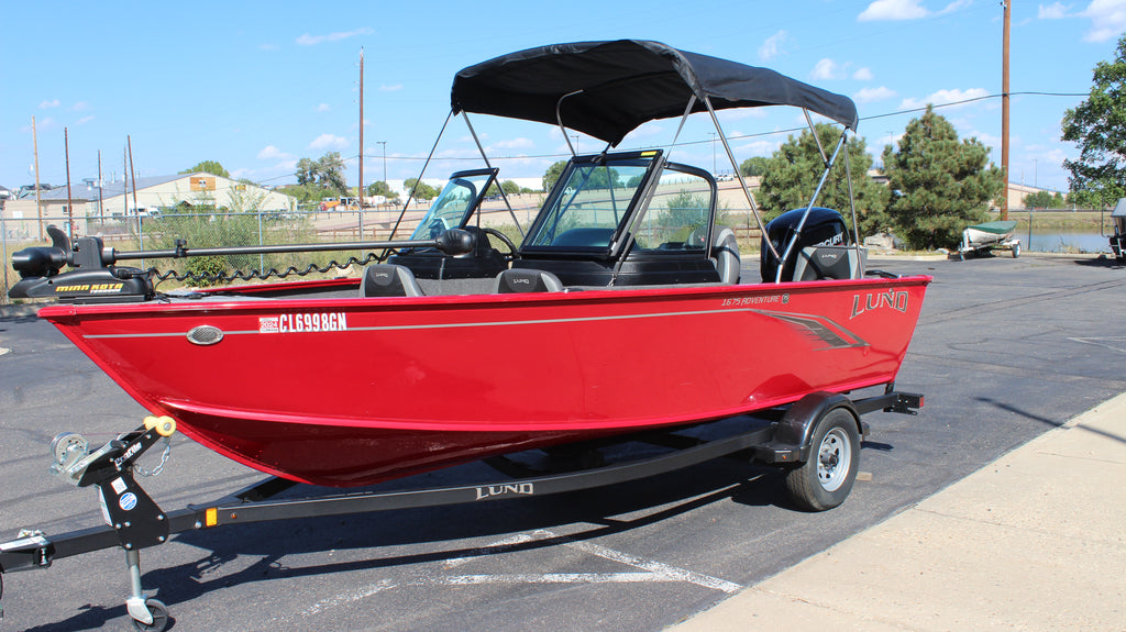 This great boat has been used as a Grand Lake rental unit. Powered by a 90 hp Mercury 4 stroke EFI. Comes with a bimini top, bow cushions, AM/FM Bluetooth stereo w/2 speakers. All vinyl floor for easy maintenance. Fully serviced with new water pump, fluids and filters. engine has 605 hours. Only $26,995 plus TTL.