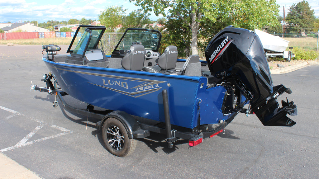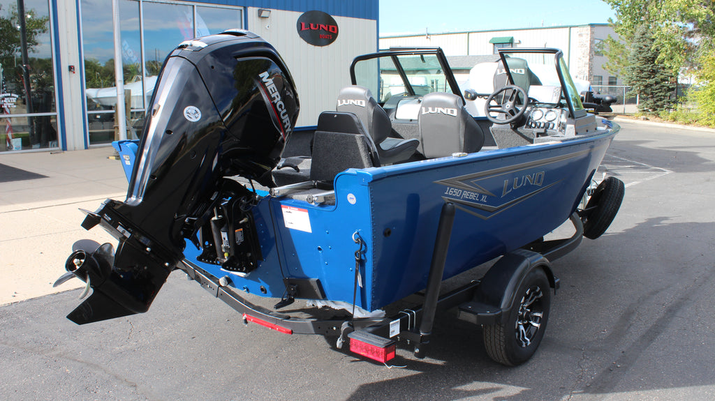 2024 Lund 1650 Rebel XL powered by a Mercury 90 hp outboard. Two left in stock to choose from, one Blue and one Black. Options on our in stock units include : Fishing Ready package includes 3 bank onboard charger, Humminbird Helix 7" sonar, Terrova 80# Ipilot trolling motor w/batteries, Travel cover, and more. Come see our great selection!