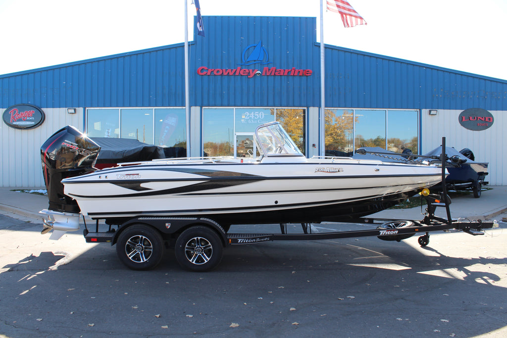 The 206 Allure is the all-around favorite for fishing and watersports. Measuring 20' 6" with an ultra-stable 100" beam, the 206 Allure is rated up to a 250hp engine, which delivers plenty of pulling power for skiers and tubers. Ahead of the walk-through windshield is a serious fishing platform with an aerated livewell, center rod storage and storage compartments. The spacious cockpit has folding driver and passenger seats, twin folding jump seats, and pedestal seats. Minn Kota® trolling motor, Lowrance® fishfinder, and a three-bank battery charger make this Triton ready to fish. Lastly, because most boats spend most of their life out of the water, the 206 Allure rides on a custom-fitted trailer with disc brakes, integrated tie-downs, LED lighting and a swing tongue. This model is loaded with tones of extras, Call or email for pricing on this in stock model.