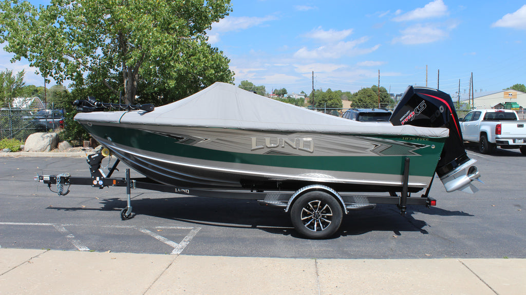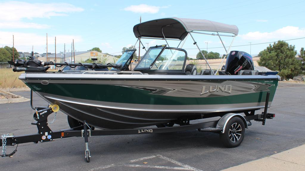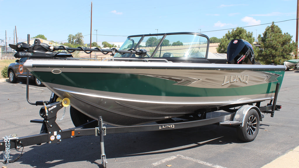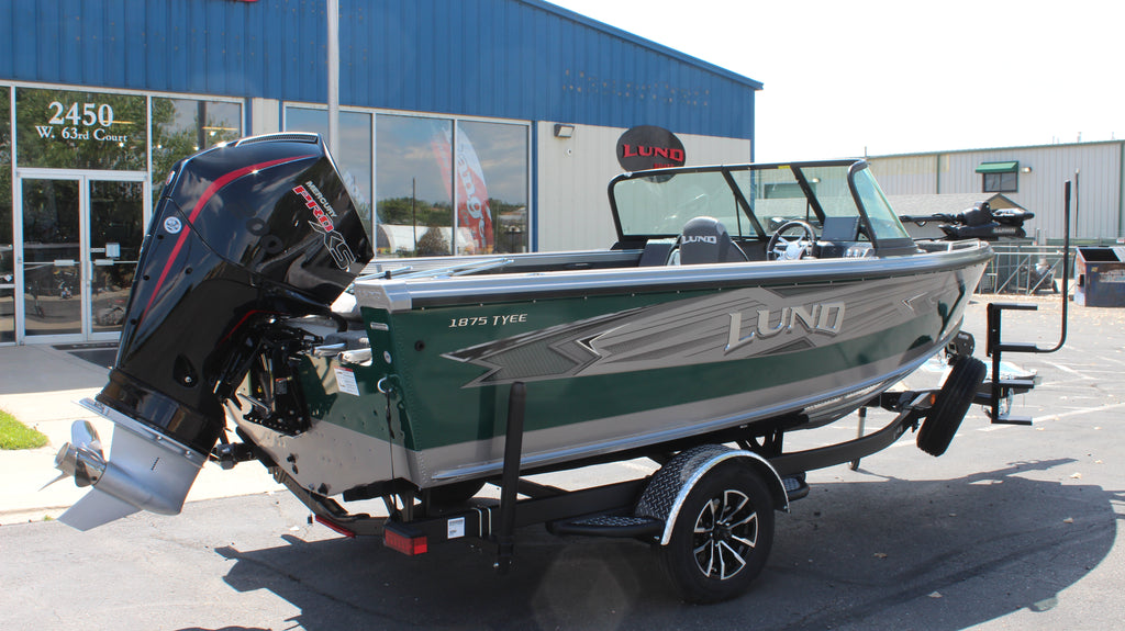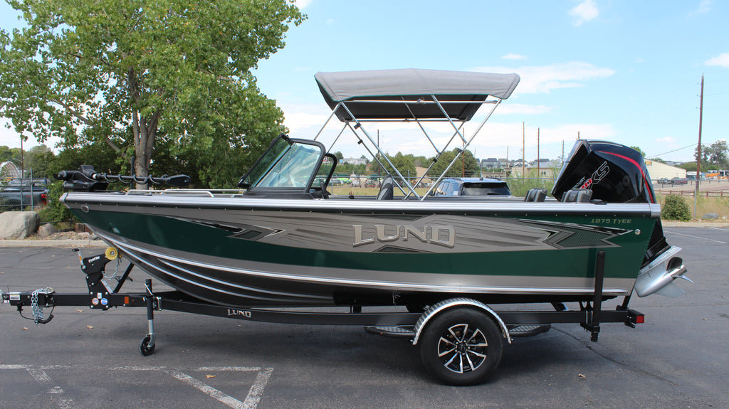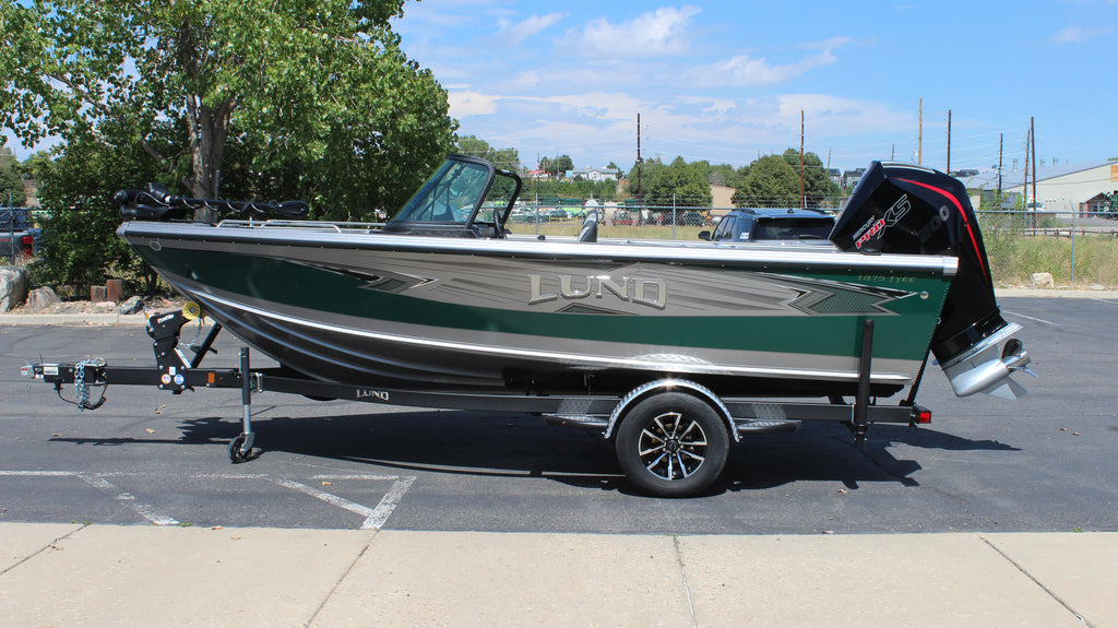 The Tyee, the legendary premium model Lund that features the very best of Lund ingredients! Check out this gorgeous Metallic Green and Silver Stone color combo, with Premium Graphics. A real head turner, sure to garner all the compliments at the lake! Powered by the Mercury 200 Pro Xs main motor and pre rigged for a kicker. Garmin electronics, Mercury Active trim for hands free trimming function, Ski package, upgraded Rockford Phosgate premium stereo, power washdown system, Custom boat cover and Bimini top and so much more. Decked out!