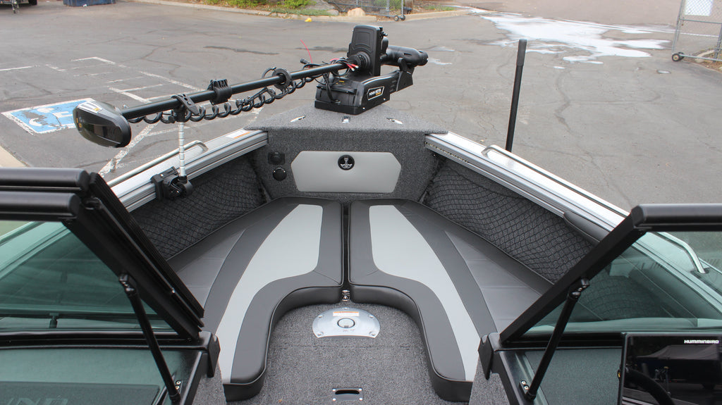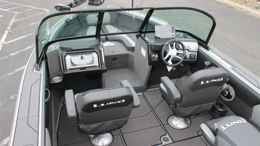 The Chief! Lund Tyee, Lund's premium flagship. This beauty is powered by the Mercury 250xl Verado motor, and is also rigged with the ultimate kicker motor, the Mercury 15hp Pro Series kicker. Gunmetal gray and silver stone two tone with premium graphics will definitely turn heads! Options? This one has them all. Including the new brushless motor MinnKota Quest 36v/72" shaft trolling motor, Humminbird Xplore 10CMSI sonar at the console, onboard 4 bank battery charger, stereo upgrade, custom bimini top and cover and more!