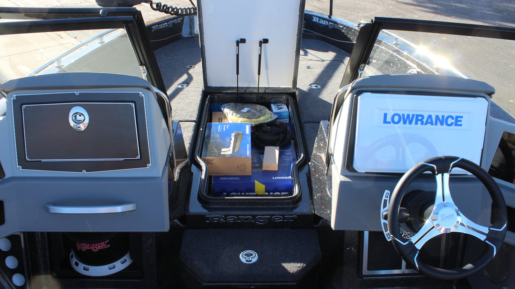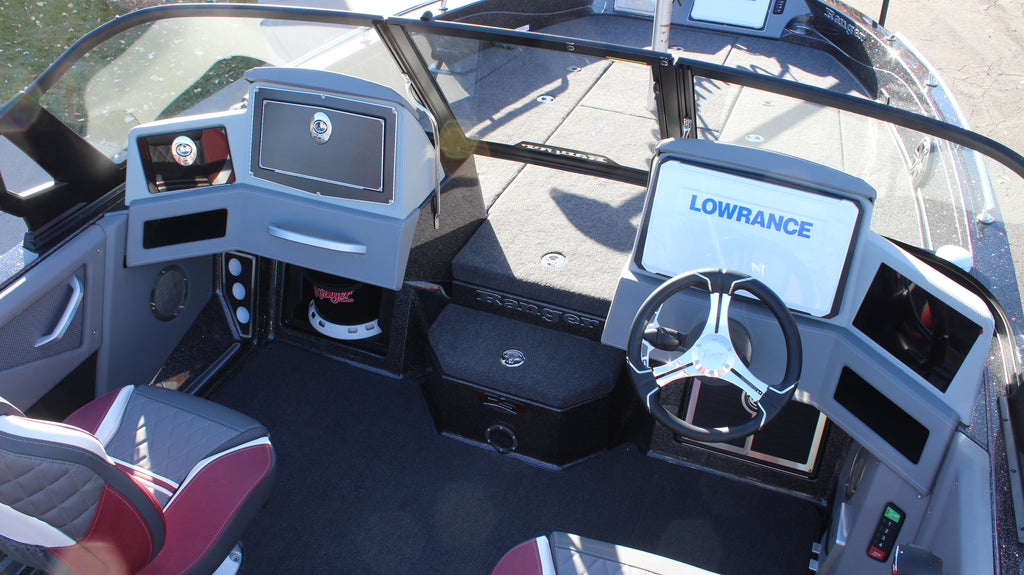 The all-new 621FS PRO is all about performance, fishability, comfort and control. The new 400HP rating delivers a smooth ride and a new level of performance. The new hull design will have an integrated area to mount traditional Lenco Tabs or the auto-adjusting Zipwake units. Newly designed tackle storage and enlarged front deck will carry a massive amount of gear also storing up to 8’ 6” rods in the center locking rod box. The drivers console now has a new multifunction display called RIDE (Ranger Intelligent Display Engine) that gives the driver control over the ignition and all accessories in the boat. The fishfinder, is relocated front-and-center for easier viewing capable of Screens up to 16″ flush-mounted. The all-new FS PRO Series of boats are the result of Ranger listening to the needs and wants of dealers, pros, customers and guides who use these boats to their limit. This model is loaded with tons of extras, Call or email for pricing on this in stock model.